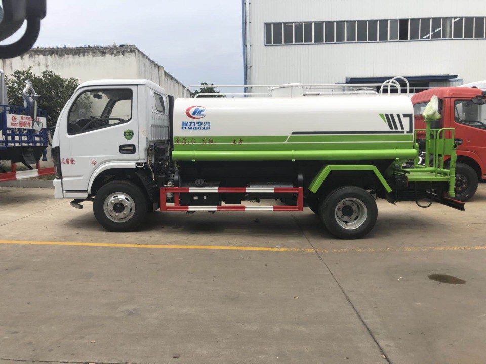 東風(fēng)5噸灑水車采用東風(fēng)多利卡底盤,白色可前翻駕駛室,朝柴102馬力國(guó)五發(fā)動(dòng)機(jī),5檔變速箱,軸距3308mm,1.8噸前橋,3.5噸后橋,7.00R16原廠鋼絲胎,原廠abs,帶方向助力,離合助力器,氣剎制動(dòng)。