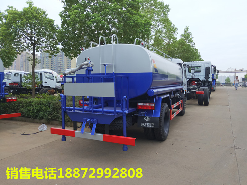 隨底盤選裝駕駛室;品名:,密度:1000千克/立方米,有效容積7.9立方米,罐體尺寸(長(zhǎng)××)(mm):4200×1980×1280;ABS系統(tǒng)生產(chǎn)廠家,型號(hào) : 吸程7米,灑水寬度14-16米,射程25-30米,引水時(shí)間<5min,流量60m3/h。前沖()、后灑、帶側(cè)噴(花灑)、帶后工作平臺(tái)、平臺(tái)上安裝綠化灑水高炮(炮噴射形狀可調(diào)節(jié):直沖、大雨、中雨、毛毛雨、霧狀、可連續(xù)調(diào)節(jié),360°旋轉(zhuǎn)),配消防接口,自流閥,濾網(wǎng),帶自吸自排功能。配備大功率專用灑水泵,泵可自吸自排,安裝過濾網(wǎng),帶消防接口,可通過消防栓進(jìn)水,帶自流閥,加裝30米霧炮,可以遙控操作,可以手動(dòng)操作,發(fā)動(dòng)機(jī)錫柴140匹馬力,國(guó)五發(fā)動(dòng)機(jī)