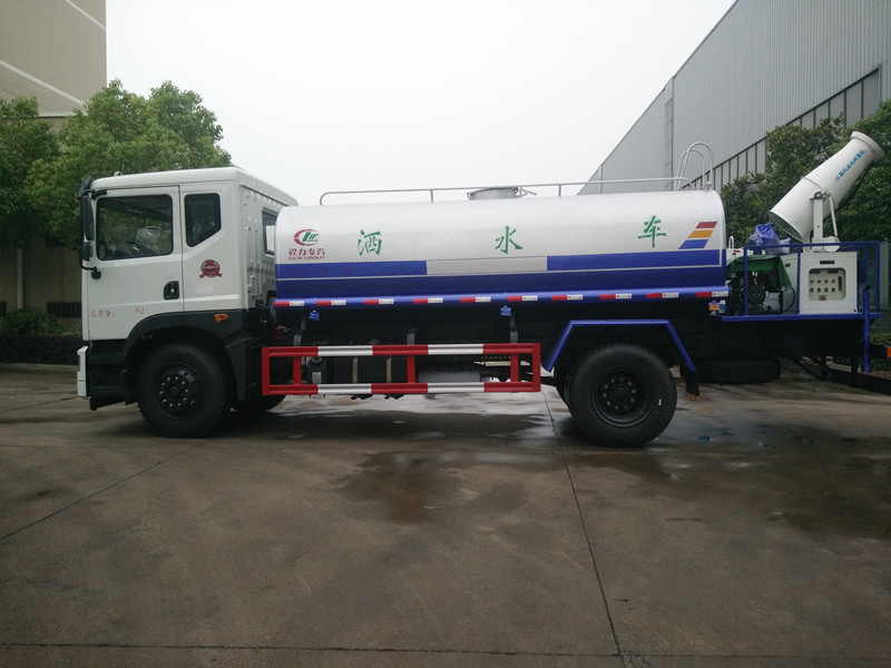 灑水車(chē)配置前沖、后灑、左右側(cè)噴水、帶后工作平臺(tái)、平臺(tái)上安裝綠化灑水高炮(炮噴射形狀可調(diào)節(jié):直沖、大雨、中雨毛毛雨、霧狀、可連續(xù)調(diào)節(jié),360°旋轉(zhuǎn)),配消防接口,自流閥,濾網(wǎng),帶專(zhuān)用灑水泵具有自吸自排功能灑水寬度≧14-16米,射程25-30米,帶增壓,方向助力。罐體采用優(yōu)質(zhì)碳鋼制作。帶兩根輸水軟管