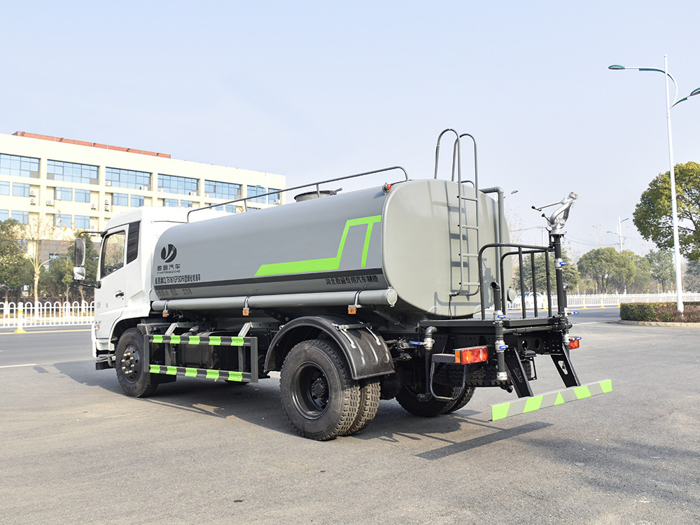 東風(fēng)天錦12放灑水車標(biāo)配前噴(鴨嘴)、后沖、后灑、側(cè)噴、后置式工作 平臺(tái),平臺(tái)上配置綠化水炮(可 360°旋轉(zhuǎn),既可以調(diào)成柱狀,也可 以調(diào)成霧狀,更可以調(diào)成直沖狀、大雨、中雨、小雨、毛毛雨),配 備優(yōu)質(zhì)大功率專用灑水泵(可自吸自排,可從河里或池塘抽水到罐體), 取力器,雜物過濾網(wǎng),消防接口,自流球閥系統(tǒng)、取力器、球閥、濾網(wǎng) 均為國家標(biāo)準(zhǔn)產(chǎn)品,主管道加粗,法蘭墊、法蘭盤加厚,大通徑球閥。 整體具備性能優(yōu)良安全可靠、效率高、流量大、維修方便等特點(diǎn)。
