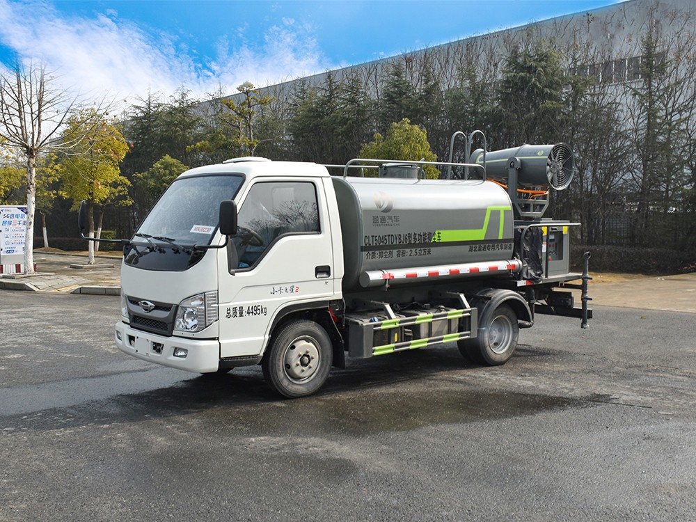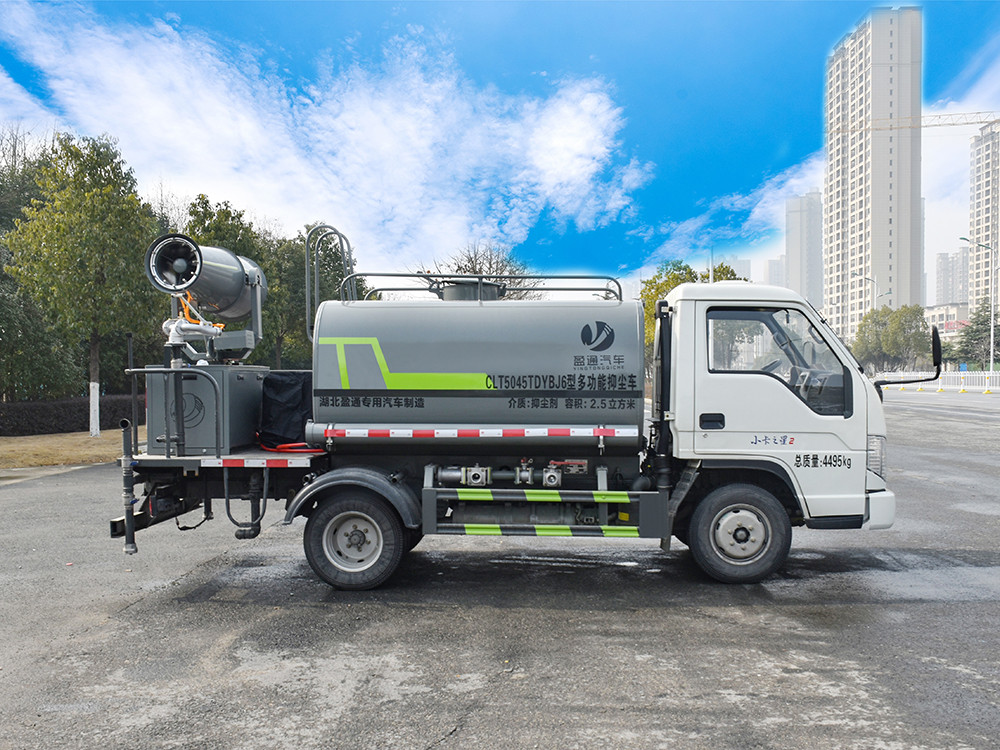 3方霧炮灑水車 整車型號(hào) CLT5045TDYBJ6 型多功能抑塵車 2 發(fā)動(dòng)機(jī)型號(hào) Q23-95C60 3 發(fā)動(dòng)機(jī)馬力/功率 全柴 95 馬力/70KW 4 發(fā)動(dòng)機(jī)排量 2300ML 5 變速箱 蒙沃 5 檔箱 6 輪胎規(guī)格 6.00 鋼絲胎 7 軸距 2600 8 總質(zhì)量 4495KG 9 整備質(zhì)量 2700KG 10 額定載質(zhì)量 1665KG 11 整車尺寸(長(zhǎng)×寬×高) 5.365*1.9*2.6 12 罐體容積 2.7 方 13 燃料種類 柴油 14 排放標(biāo)準(zhǔn) 國(guó)六 15 水泵型號(hào) 40/50 16 罐體材質(zhì) Q235 碳鋼產(chǎn)品功能展示 霧炮 后灑 后對(duì)沖 高炮 側(cè)噴