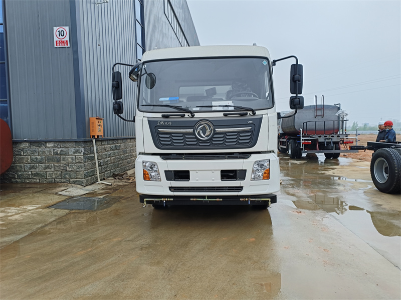 洗掃車,道路清掃車前端加有可左右上下擺動的高壓沖嘴,可對局部頑漬進行沖洗。開式液壓系統(tǒng)驅動左右立掃升降、左右掃肋旋轉、吸嘴升降、垃圾箱后門開閉、垃圾箱傾翻復位等機械動作。底盤變速箱側取力器驅動低壓水泵,實現(xiàn)灑水車的低壓沖洗功能。工作裝置電控系統(tǒng)采用PLC智能化控制,一鍵式作業(yè)起動和停機,操作方便,大大減少誤操作。