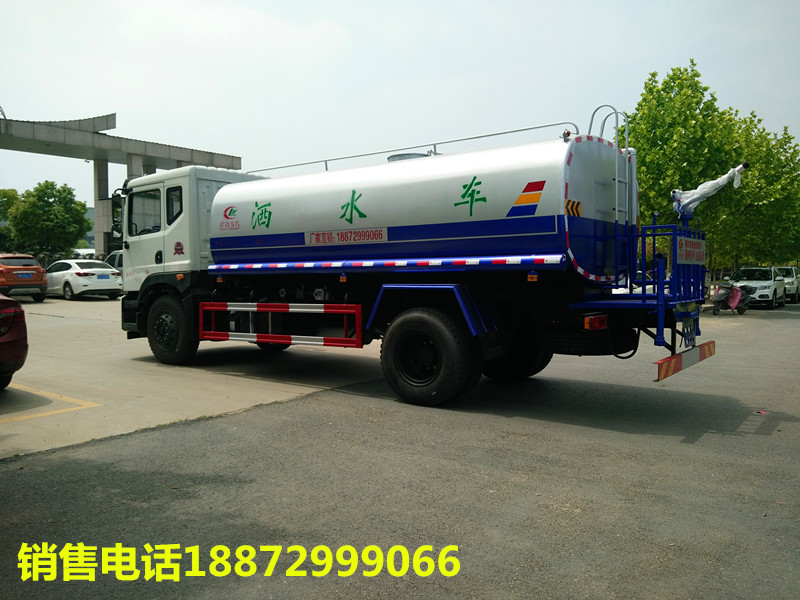 東風(fēng)15噸灑水車隨底盤選裝駕駛室;品名:;密度:1000千克/立方米;有效容積:11.45立方米;外形尺寸長(zhǎng)(mm)/軸距(mm)/后懸(mm)/罐體尺寸(長(zhǎng)×長(zhǎng)軸×短軸)(mm)對(duì)應(yīng)關(guān)系灑水車吸程≧7米,灑水寬度≧14-16米,射程25-30米,引水時(shí)間<5min,流量60m3/h。前沖()、后灑、帶側(cè)噴(花灑)、帶后工作平臺(tái)、平臺(tái)上安裝綠化灑水高炮(炮噴射形狀可調(diào)節(jié):直沖、大雨、中雨、毛毛雨、霧狀、可連續(xù)調(diào)節(jié),360°旋轉(zhuǎn)),配消防接口,自流閥,濾網(wǎng),帶自吸自排功能。配備大功率專用灑水泵,泵可自吸自排,安裝過(guò)濾網(wǎng),帶消防接口,可通過(guò)消防栓進(jìn)水,帶自流閥,隨車選裝20米綠化卷盤,可噴灑農(nóng)藥,罐體金屬漆。罐體有橢圓和方圓罐兩種,可根據(jù)用戶的要求定做。