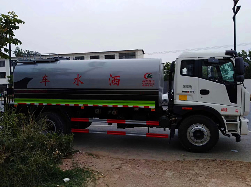 福田灑水車隨底盤選裝駕駛室;側(cè)噴為選裝件;品名:水;密度:1000千克/立方米;有效容積:12立方米;軸距3950mm時,罐體外形尺寸(長×長軸×短軸)(mm):4600×2180×1390,外形尺寸長(mm)/前懸(mm)對應(yīng)關(guān)系:7700/1250,7900/1450;軸距4500mm時,罐體外形尺寸(長×長軸×短軸)(mm):5200×2080×1290;外形尺寸長(mm)/前懸(mm)對應(yīng)關(guān)系8250/1250,8450/1450;ABS型號為3631010-C2000,生產(chǎn)廠家為東科克諾爾商用車制動系統(tǒng)(十堰)有限公司;側(cè)面防護裝置材料材質(zhì):Q235,連接方式:焊接;后下部防護裝置材料材質(zhì):Q235,連接方式:焊接,斷面尺寸(寬×高):30×120(mm),離地高度:500mm. 吸程≧7米,灑水寬度≧14-16米,射程≧25-30米,引水時間<5min,流量60m3/h。前沖(噴)、后灑、帶側(cè)噴(花灑)、帶后工作平臺、平臺上安裝綠化灑水高炮(炮噴射形狀可調(diào)節(jié):直沖、大雨、中雨、毛毛雨、霧狀、可連續(xù)調(diào)節(jié),360°旋轉(zhuǎn)),配消防接口,自流閥,濾網(wǎng),帶自吸自排功能。配備大功率專用灑水泵,泵可自吸自排,安裝過濾網(wǎng),帶消防接口,可通過消防栓進水,帶自流閥,隨車選裝20米綠化卷盤,可噴灑農(nóng)藥,罐體金屬漆。罐體有橢圓和方圓罐兩種,可根據(jù)用戶的要求定做,了解灑水車價格,福田12噸灑水車報價,可以聯(lián)系程力灑水車生產(chǎn)廠家,陶經(jīng)理