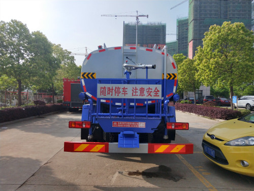 上裝配置:罐體容積為8-10立方灑水車,罐體鋼板為4mm碳鋼Q235材質,罐內隔板具有防波作用,以減輕汽車行駛時罐體液體沖擊,罐體及整車外形尺寸按照公告。帶大功率專用灑水泵,泵可自吸自排,整車前沖、后灑、側噴、帶65消防接口,后平臺帶綠化灑水炮,灑水炮可全方位旋轉,可連續(xù)調成直沖狀、大雨、小雨、毛毛雨;前封頭帶水位計,后平臺主管路帶1寸澆花接口,后爬梯。平臺后部帶小安全告知牌:“隨時停車,注意安全”,帶兩根水管及陰陽端。罐體顏色:上白/下藍,銀灰/銀藍,罐體兩側噴“灑水車、綠化噴灑車”字樣,貼反光標示。灑水車可加裝前沖后灑氣動閥駕駛室控制、可加裝霧炮機組發(fā)電機組噴霧降塵裝置、車頭可加裝推雪雪鏟、雪滾裝置街道、公路除雪等。
