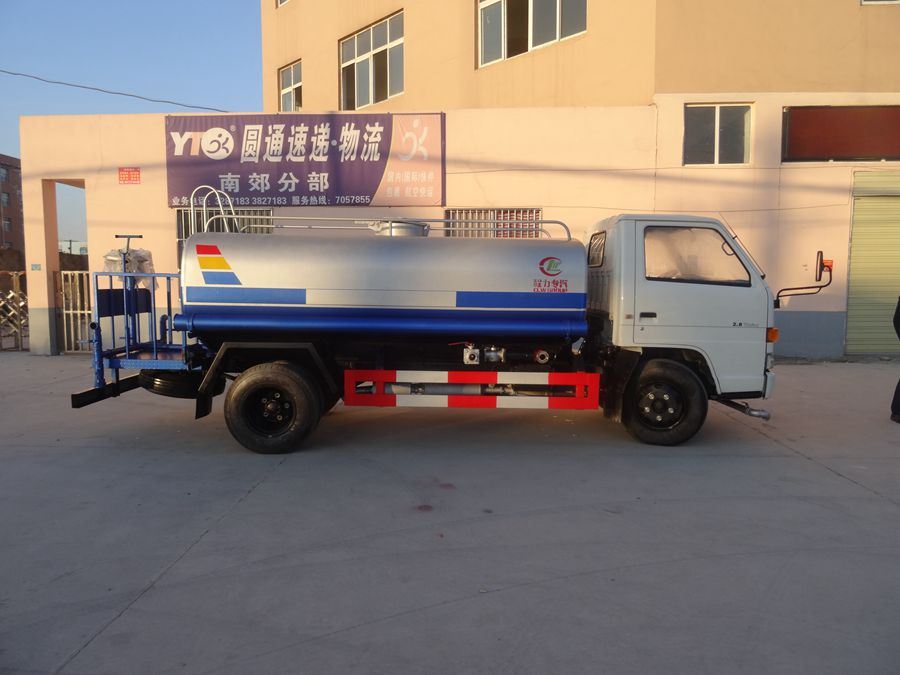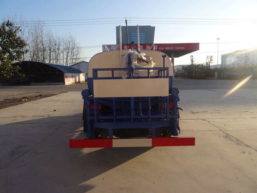 改裝配置:罐體采用4mm厚武鋼專用容積板制作,實(shí)際容積5立方,罐內(nèi)隔板具有防波作用,以減低汽車行駛時(shí)罐體液體的沖擊。泵 進(jìn)泵出,消防栓接口,前沖、后灑、側(cè)噴、后工作平臺(tái)帶綠化水炮,垂直吸程≧7米,灑水寬度≧14-16米,射程≧20-25米,引水時(shí) 間<5min,流量90m3/h。自流閥、濾網(wǎng)、帶自吸自排功能。兩根等長(zhǎng)輸水管,金屬漆,其余標(biāo)配。可加裝藥盤、氣動(dòng)控制閥、噴藥設(shè)備、非車帶泵動(dòng)力等。