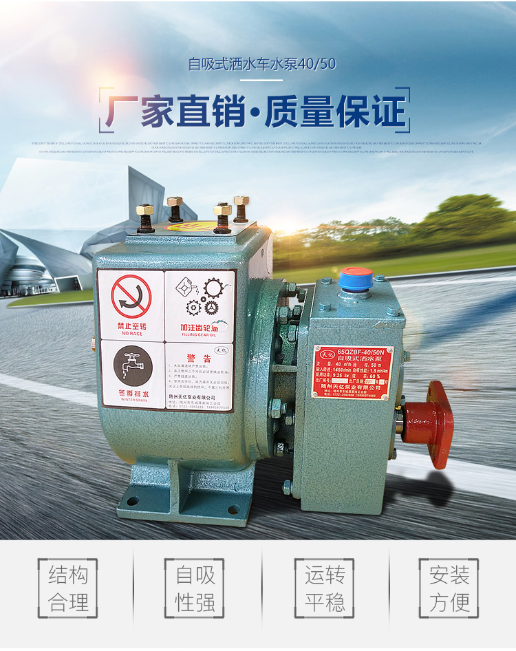 1、水泵性能分析比較 水泵的性能參數(shù)主要包括流量、揚(yáng)程、輸入軸轉(zhuǎn)速、軸功率、自吸高度、自吸時(shí)間等,其選用依據(jù)主要以滿足灑水車(chē)的各項(xiàng)工作性能為目的。各廠家具體選用標(biāo)準(zhǔn)不一。