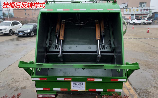 ★掛捅式自裝卸式垃圾車:采用鏈條和液壓油缸聯(lián)動(dòng)裝置,實(shí)現(xiàn)對(duì)垃圾斗提升和翻轉(zhuǎn),將多處垃圾斗內(nèi)的垃圾自動(dòng)收入車廂,并可自卸。