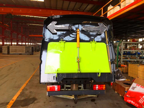 2、掃路車采用吸掃結(jié)合的收集,濕式除塵、電液控制液壓傾翻卸料的作業(yè)對(duì)路面進(jìn)行清掃業(yè)。