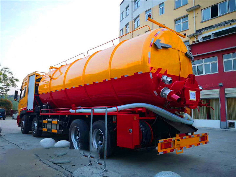 東風(fēng)天龍后八輪高壓清洗吸污車:采用國產(chǎn)優(yōu)質(zhì)碳鋼板制作,罐體采用一次成型而成,鋼板厚度8mm厚,封頭8mm厚,采用通潔或者品浮高壓清洗泵,大功率國產(chǎn)水循環(huán)吸污泵,加裝液壓卷盤,配60-100米高壓管,配10個多功能耐磨沖頭,尾部帶一個自流口,帶視糞窗,洗手裝置,吸污罐帶液壓頂起裝置,可以選擇吸污罐后蓋液壓打開或者不打開,配8米吸污管一根。東風(fēng)天龍清洗吸污車底盤配置:東風(fēng)天龍豪華駕駛室,康明斯發(fā)動機(jī)270馬力,帶增壓,9檔變速箱,5噸前橋,10噸雙后橋,方向助力,斷汽剎,1100鋼絲胎(含一條備胎),原裝空調(diào)