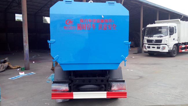 垃圾車上裝配置:全密封式垃圾箱體,采用優(yōu)質(zhì)武鋼產(chǎn)碳鋼板焊接制作,邊板折彎強(qiáng)化,箱體右側(cè)配液壓掛桶提升機(jī),可掛國(guó)標(biāo)120升或240升塑料垃圾桶,提升速度快,穩(wěn)定性高,尾門(mén)彈簧鎖扣帶橡膠密封條,箱內(nèi)設(shè)污水欄,箱體雙缸液壓自卸,多路閥手柄操控。
