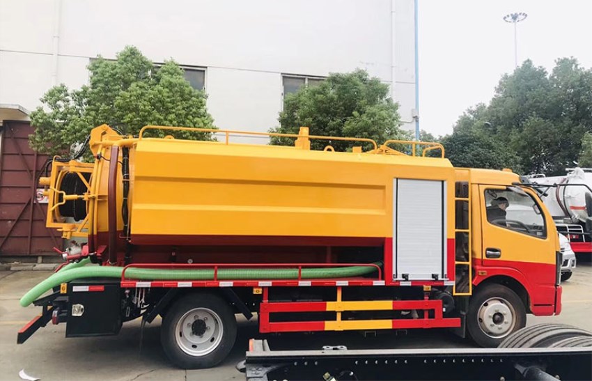 2、 吸污部分使用山東SK-9水循環(huán)真空泵,抽速9m3/min,垂直吸程:9-10米。相對(duì)于傳統(tǒng)旋片式真空泵結(jié)構(gòu)緊湊、吸力強(qiáng),工作平穩(wěn)可靠,操作簡(jiǎn)單,維修便捷。帶視糞窗、洗手裝置,7米φ102吸污罐一根。帶后自流口,帶視糞窗,帶壓力表,帶洗手裝置。