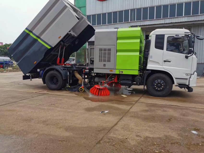 東風(fēng)天錦洗掃車具有路面清洗、路面清掃路緣和路緣石立面洗刷、低壓沖洗、噴霧 除塵等多功能。有“全洗掃”、 “左洗掃”、 “右洗掃”、 “全掃”、 多種作 業(yè)模式可選擇。選擇“全洗掃”模式清洗廣場和路面,清洗效率效果好,洗 凈率達(dá) 95%以上。選擇“左洗掃”或“右洗掃”模式清洗路面和路緣 。需要進(jìn) 行路面清掃或路面保潔作業(yè)時(shí),可選擇掃路模式。需要噴霧除塵時(shí),可開啟噴霧裝置,進(jìn)行噴霧除塵作業(yè)?梢韵駷⑺囈粯訉(duì)路面進(jìn)行低壓沖洗作業(yè)。