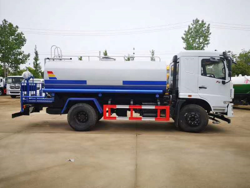東風12噸灑水車選裝駕駛室前臉局部造型變化,選裝遮陽板.選裝后高位花灑,選裝方圓管道箱,選裝后霧炮裝置,選裝后弧形噴霧.