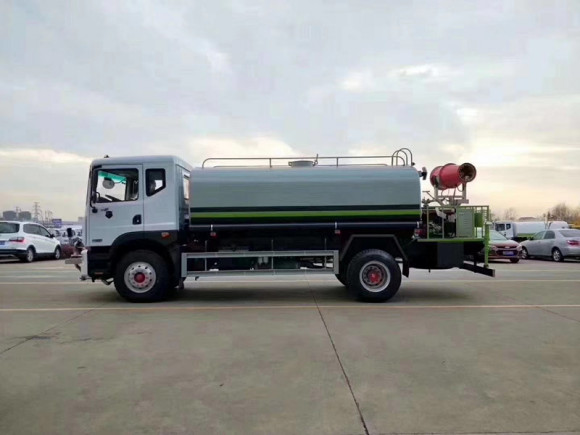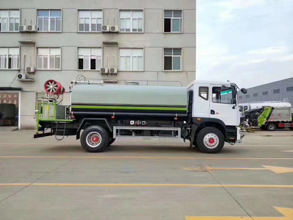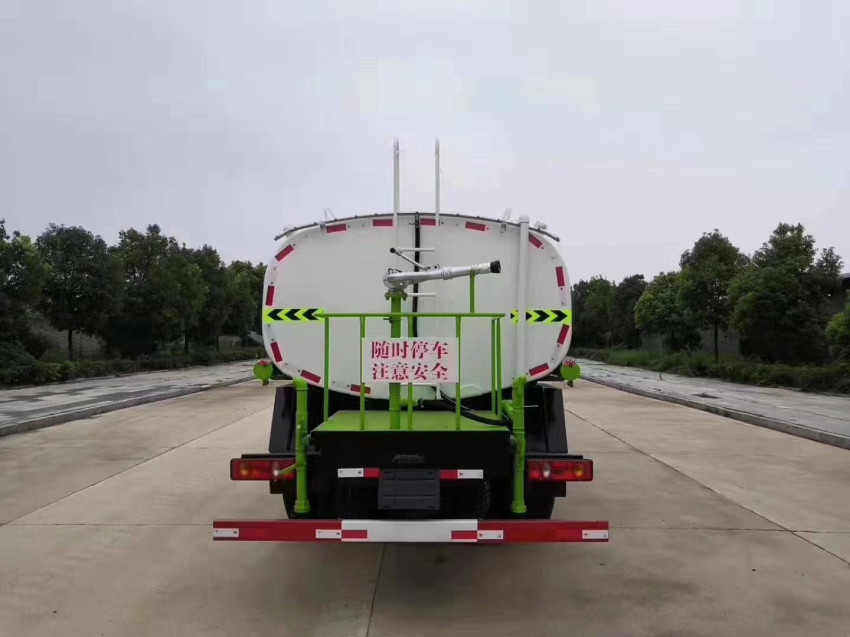 福田瑞沃15噸灑水車大功率水泵,灑水車前沖(噴)后灑,帶側(cè)噴,帶65消防接口,后平臺(tái)帶泡不帶門,前封頭帶水位計(jì),后平臺(tái)主管路帶1寸澆花接口,后爬梯,配3米長抽水鋼絲塑料管兩根,用于抽水作業(yè)使用;罐后帶工作平臺(tái),平臺(tái)上帶安全護(hù)欄,裝高位綠化灑水炮一個(gè),灑水炮可全方位360度旋轉(zhuǎn),可連續(xù)調(diào)成直沖狀、大雨、小雨、毛毛雨等不同噴灑方式,調(diào)成直沖狀射程長度≥28m、高度≥12m,調(diào)成細(xì)雨?duì)钌涑虒挾取?5m;后工作平臺(tái)下用槽鋼連接焊有5mm厚保險(xiǎn)杠,提高灑水車的主動(dòng)安全性,泵可自吸自排,安裝過濾網(wǎng),帶消防接口,可通過消防栓進(jìn)水,帶自流閥,隨車選裝20米綠化卷盤,可噴灑農(nóng)藥。