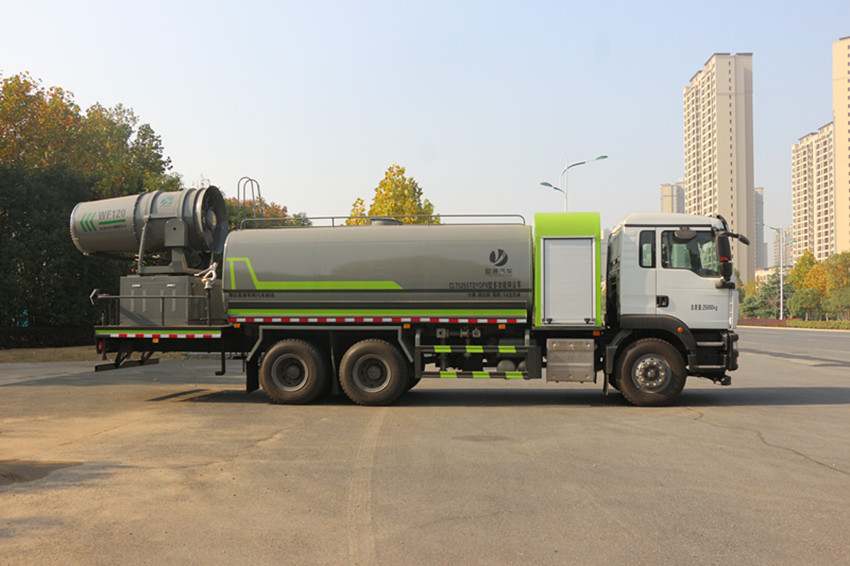 20噸灑水車罐體尾部采用大平臺(tái),可搭載30米車載式風(fēng)送噴霧機(jī)組,具有功力強(qiáng)、射程遠(yuǎn)、穿透力強(qiáng)、霧粒附著力強(qiáng)、覆蓋范圍廣、可以實(shí)現(xiàn)精量噴霧等特點(diǎn),適合風(fēng)沙抑塵、工地降塵、拆遷降塵,專門用于城市開發(fā)區(qū)建設(shè)工地、拆遷工地、車站儲(chǔ)煤場(chǎng)、洗煤廠、焦化廠、鐵礦、鋼廠、港口等的揚(yáng)塵風(fēng)沙控制;在城市遭遇霧霾天氣、空氣質(zhì)量PM2.5嚴(yán)重超標(biāo)時(shí),可隨意選定一個(gè)區(qū)域進(jìn)行液霧降塵、分解淡化空氣中的顆粒濃度、將飄浮在空氣中的污染顆粒物、塵埃等迅速逼降地面,達(dá)到治理凈化空氣的明顯良好效果。