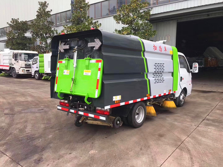 該車為專業(yè)掃路車輛,裝備有垃圾箱,水箱,洗掃刷等專用裝置,用于道路清掃作業(yè).隨底盤選裝駕駛室.