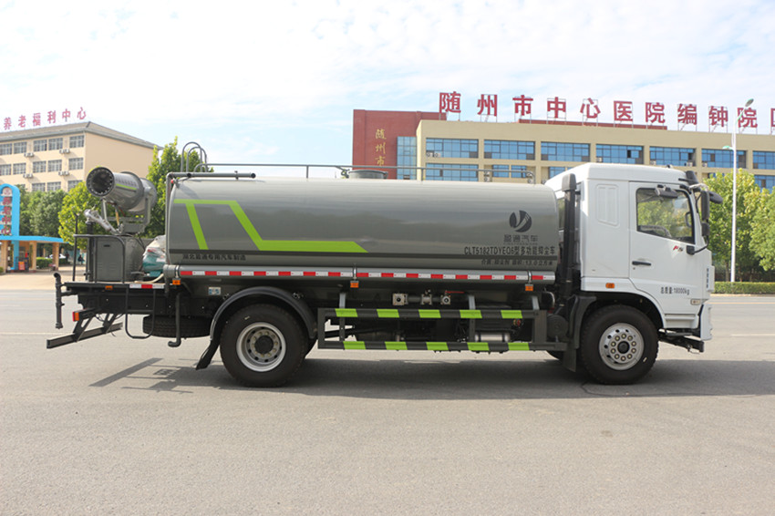 3.新款東風12噸灑水車,東風T3駕駛室,玉柴四缸160馬力發(fā)動機,3950mm軸距,五檔帶副變速箱,8噸后橋,9.00R20鋼絲胎,ABS。上裝灑水功能可以根據(jù)用戶需要設(shè)計定做。前沖洗噴頭、后灑水噴頭、鴨嘴側(cè)噴頭、綠化高壓水炮、消防栓管路接口、自流閥等裝置。標配60/90型自吸式抽/排灑水泵,抽水流量可達到60立方/小時,前沖灑水寬度大于14米,水炮射程可達28米以上,吸水落差小于10米。帶過濾網(wǎng),可有效過濾罐體內(nèi)部和野外河流池塘內(nèi)的水中雜質(zhì),避免堵塞管道,可拆卸式濾網(wǎng)應(yīng)定期檢驗清洗。
