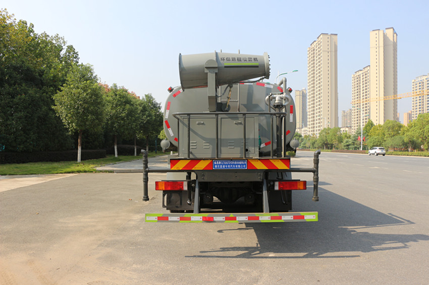 上裝配置:罐體采用5mm厚武鋼集團供應(yīng)的罐車專用板材制作,容積:20立方;罐內(nèi)3道防浪隔板具有防波作用,減低罐內(nèi)液體的沖擊。配備國內(nèi)大功率灑水車專用水泵,可自吸自排,引水時間<15min,流量60m3/h,揚程90米。東風(fēng)天龍灑水車其它專用部分標配為:前沖、后灑、側(cè)噴、后工作平臺、360度可調(diào)節(jié)綠化水炮,水泵垂直吸程≧7米,前沖灑水寬度≧16米,綠化水炮射程≧35米,自流閥、濾網(wǎng)、消防接口(可連接消防栓取水,可作應(yīng)急消防用)。罐前量管(觀察罐內(nèi)水位)、罐后爬梯、罐上罐口帶簡易護欄、罐側(cè)雙炮筒、6米長4寸鋼絲塑膠管兩根,罐體表面雙層油漆工藝,防銹、耐腐蝕,其余有廠家標配?蛇x擇加裝加裝藥盤、氣動控制閥、噴藥設(shè)備、罐內(nèi)防腐等。