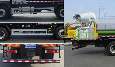 專用裝置主要是抑塵霧炮,用于城市抑塵.罐體有效容積9.97立方米,罐體外形尺寸(長度×長軸×短軸) (mm):3900×2350×1550.整車長/軸距/前懸/后懸對應關系(mm):8700/4500/1290/2910.側面防護材料 :Q235A碳鋼.連接方式:左右側面采用焊接連接.后防護裝置材料:Q235A碳鋼.連接方式:采用焊接連接. 后部防護斷面尺寸(mm):120×50,后部防護離地高度(mm):500.ABS型號為CM4XL-4S/4M,生產廠家為 廣州瑞立科密汽車電子股份有限公司.隨底盤選裝不同風格駕駛室.選裝不同樣式的霧炮. |