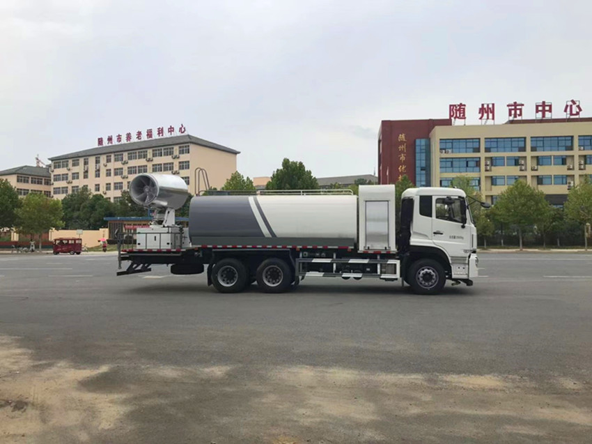 東風(fēng)天龍多功能抑塵車用途為抑塵降霾,主要裝置為罐體及噴霧裝置;隨底盤選裝駕駛室,選裝噴霧裝置樣式;