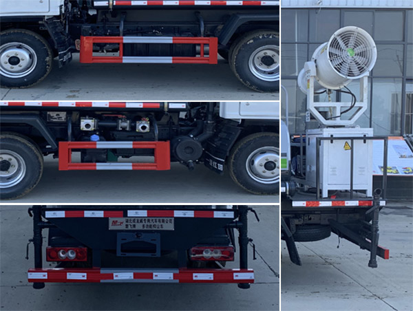 該車(chē)用途為抑塵降霾,主要裝置為水泵與風(fēng)機(jī);罐體有效容積:1.91立方米,罐體外形尺寸(mm)