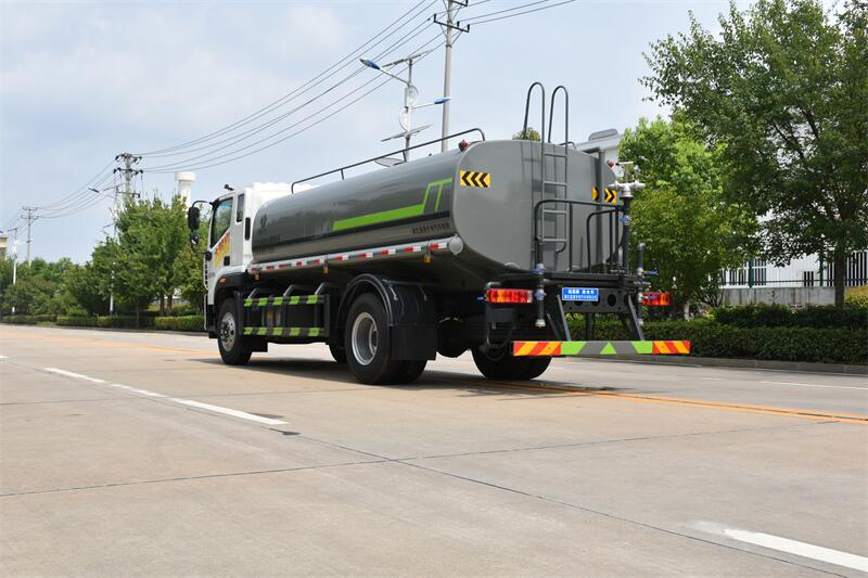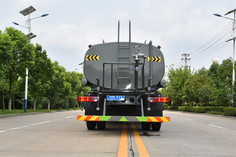 福田15噸灑水車標配前噴(鴨嘴)、后沖、后灑、側噴、后置式工作 平臺,平臺上配置綠化水炮(可 360°旋轉(zhuǎn),既可以調(diào)成柱狀,也可 以調(diào)成霧狀,更可以調(diào)成直沖狀、大雨、中雨、小雨、毛毛雨),配 備優(yōu)質(zhì)大功率專用灑水泵(可自吸自排,可從河里或池塘抽水到罐體), 取力器,雜物過濾網(wǎng),消防接口,自流球閥系統(tǒng)、取力器、球閥、濾網(wǎng) 均為國家標準產(chǎn)品,主管道加粗,法蘭墊、法蘭盤加厚,大通徑球閥。 整體具備性能優(yōu)良安全可靠、效率高、流量大、維修方便等特點。 二.產(chǎn)品配置 1.底盤配置: 發(fā)動機玉柴 200 馬力(四缸),法士特 8 檔變速箱,軸距 4500,前 橋 4.5T,后橋 10T,10.00 鋼絲胎,斷氣剎,空調(diào),電動玻璃,ABS。