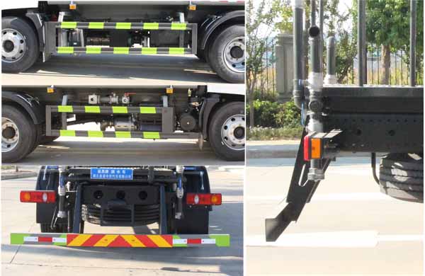 該車主要用于城鄉(xiāng)園林綠化,路面噴灑;主要裝置為罐體及噴灑裝置.罐體總?cè)萘?11.55立方米;罐體有效容積:11立方米;罐體外形尺寸(長×長軸×短軸)(mm):4400×2350×1600.ABS型號/生產(chǎn)廠家:3631010-C2000/東科克諾爾商用車制動(dòng)系統(tǒng)(十堰)有限公司,4460046450/采埃孚商用車系統(tǒng)(青島)有限公司,J ABS/焦作博瑞克控制技術(shù)有限公司.側(cè)、后防護(hù)材料均為:Q235碳鋼,連接方式均為:螺栓連接,后部防護(hù)截面尺寸(mm):120×50,后部防護(hù)離地高度(mm):470.僅采用底盤3950mm軸距改裝.選裝前部不帶電子霧炮,選裝前部電子霧炮樣式.當(dāng)前部不帶電子霧炮時(shí),車長7700mm,7800mm,無前伸;當(dāng)前部選裝電子霧炮時(shí),車長8200mm,8300mm,前伸500mm.隨底盤選裝駕駛室,選裝自動(dòng)球閥安裝位置,選裝噴灑裝置樣式,選裝后部箭頭燈裝置,選裝弧形噴灑裝置,選裝后部樣式,選裝后部大工作平臺.后部作業(yè)燈僅在作業(yè)時(shí)開啟,車輛行駛過程中不可開啟.