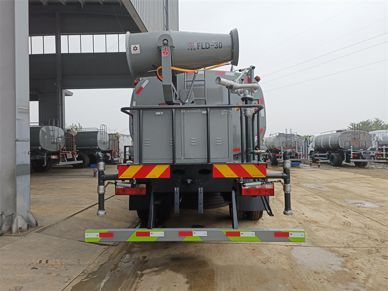 東風(fēng)D9霧炮灑水車整車型號 CLT5160TDYEQ6 型多功能抑塵車 2 發(fā)動機型號 D4.0NS6B195 3 發(fā)動機馬力/功率 康明斯 195 馬力/143KW 4 發(fā)動機排量 4000ML 5 變速箱 法士特 8 檔(帶高低檔) 6 輪胎規(guī)格 275 真空胎 7 軸距 3950 8 總質(zhì)量 16200KG 9 整備質(zhì)量 6750KG 10 額定載質(zhì)量 9255KG 11 整車尺寸(長×寬×高) 7.75*2.5*3.2 12 罐體容積 12 方 13 燃料種類 柴油 14 排放標(biāo)準(zhǔn) 國六 15 水泵型號 60/90 16 罐體材質(zhì) Q235 碳鋼. 灑水車產(chǎn)品功能展示 前沖鴨嘴 后灑 后對沖 高炮 高位花灑 側(cè)噴 霧炮