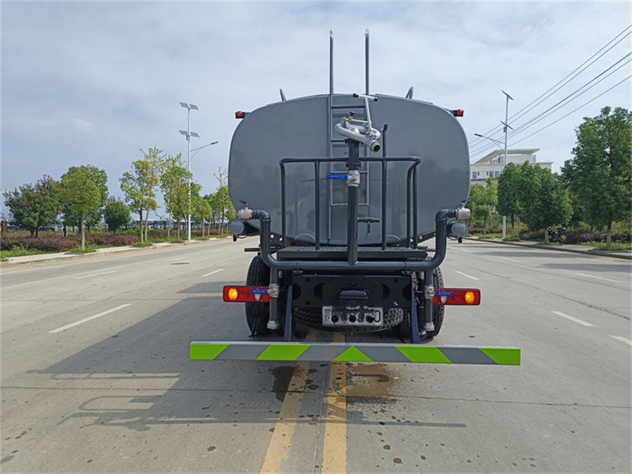 標配前噴 (鴨嘴) 、后沖、后灑、側噴、后置式工作 平臺,平臺上配置綠化水炮 (可 360°旋轉,既可以調成柱狀,也可 以調成霧狀,更可以調成直沖狀、大雨、中雨、小雨、毛毛雨) ,配 備優(yōu)質大功率專用灑水泵(可自吸自排,可從河里或池塘抽水到罐體), 取力器,雜物過濾網,消防接口, 自流球閥系統(tǒng)、取力器、球閥、濾網 均為國家標準產品