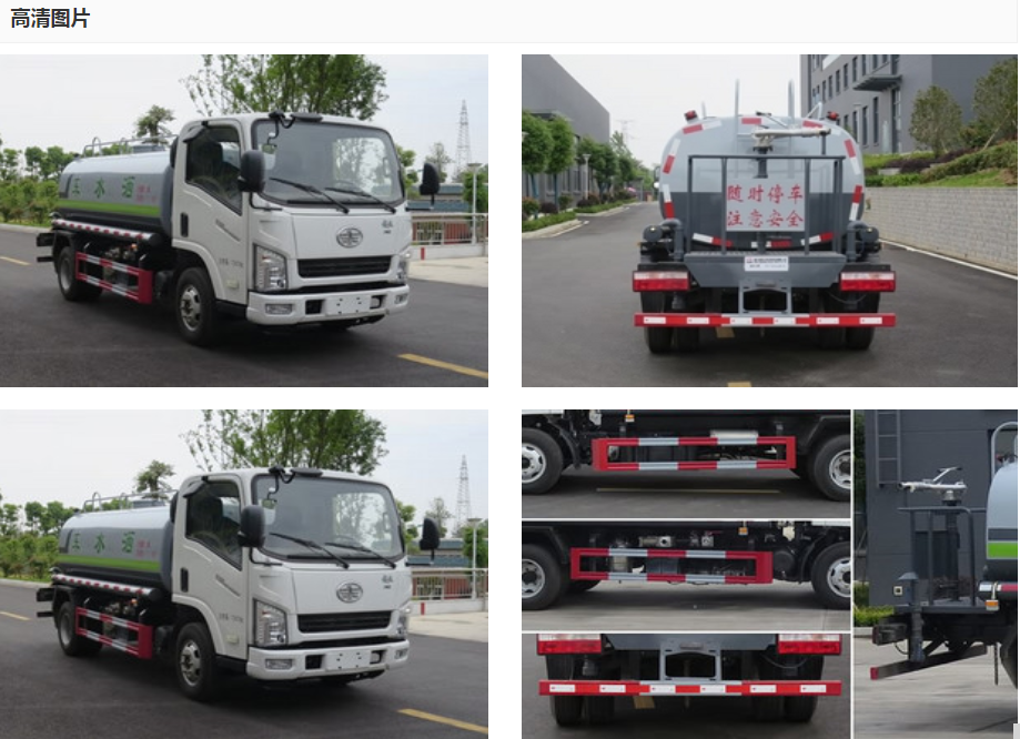 國六解放5噸灑水車,罐體容積5立方米,該車具有免征公告(可免交車輛購置稅)。采用武鋼4mm優(yōu)質(zhì)碳鋼板一次卷壓成型,完全做到無縫成型。罐體內(nèi)設(shè)多道防波隔板,采用高壓氣體試漏檢測,使罐體具有強(qiáng)度高,重心穩(wěn),車輛運(yùn)載安全平穩(wěn)。罐體外表為烤漆,罐體及各保險(xiǎn)杠貼紅白色視覺反光條,罐體兩側(cè)噴“綠化灑水車”字樣(可按您的要求噴繪字樣),罐體顏色出廠為上白下綠或上白下藍(lán)(可按您的要求噴繪顏色)。采用CA1070K2L3E6B底盤,錫柴130馬力發(fā)動(dòng)機(jī),外形尺寸:6200,5995 * 2000 * 2400,2700  (mm),六檔變速箱,總質(zhì)量(kg) 7360 額定質(zhì)量(kg) 3930 整備質(zhì)量(kg) 3300 ,軸距3360mm,配40-50大功率水泵,帶前噴,后灑,側(cè)噴,水炮,后工作平臺(tái)。