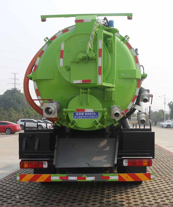 吸污車(chē)該車(chē)主要用于下水道系統(tǒng)的清理和疏通工作;主要裝置為罐體及清洗吸污裝置總成;罐體尺寸為(總長(zhǎng)×直徑)(mm):5650×2000(前部含封頭長(zhǎng)2550mm為清水罐,后部含封頭長(zhǎng)3100mm為污水罐);污水罐總?cè)萘?7.9立方米;有效容積:7.52立方米;介質(zhì):液態(tài)污物,清水罐總?cè)萘?6.32立方米,有效容積:6.02立方米,介質(zhì):水;兩罐獨(dú)立,且不能同時(shí)滿(mǎn)載,清洗功能時(shí)用清水罐,吸污功能時(shí)用污水罐,兩罐不能同時(shí)使用.側(cè)、后防護(hù)材料均為:Q235碳鋼,連接方式均為:螺栓連接,后部防護(hù)截面尺寸(mm):120×60,后部防護(hù)離地高度(mm):470;卸料方式為舉升后卸式,ABS系統(tǒng)型號(hào):ABS-VI.E;生產(chǎn)企業(yè):廣州瑞立科密汽車(chē)電子股份有限公司.ABS系統(tǒng)型號(hào):ABS-E;生產(chǎn)企業(yè):威伯科汽車(chē)控制系統(tǒng)(中國(guó))有限公司,ABS系統(tǒng)型號(hào):3550D-1010;生產(chǎn)企業(yè):東科克諾爾商用車(chē)制動(dòng)系統(tǒng)(十堰)有限公司.采用4800mm軸距.選裝左側(cè)樣式;隨底盤(pán)選裝限速裝置,限速90km/h.選裝尿素罐位置,選裝電瓶位置。選裝罐體頂部無(wú)護(hù)欄裝置,選裝側(cè)面無(wú)罐體加強(qiáng)筋樣式,選裝后部吸污口樣式。