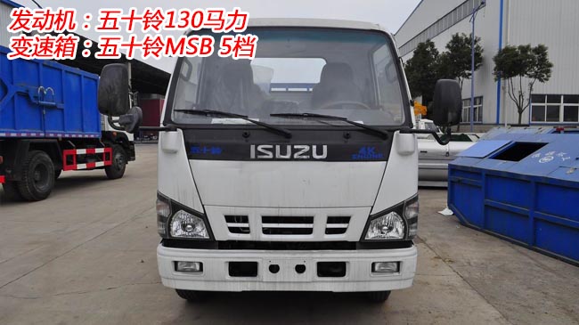 五十鈴擺臂式垃圾車,慶鈴五十鈴底盤,600P駕駛室,五十鈴130馬力發(fā)動機,五十鈴MSB5檔變速箱,帶空調,動力轉向,前橋2.5噸,后橋4.8噸,帶ABS,7.00R16鋼絲胎,雙回路式油剎,單排可反轉。