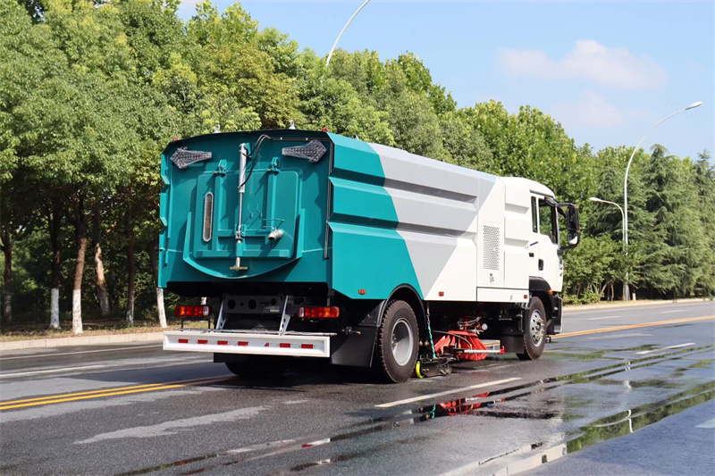 9、掃路車,清掃車,洗掃車,除塵過濾系統(tǒng)設(shè)置三級(jí)氣力輸送除塵裝置。濾筒式過濾系統(tǒng)采用脈沖式除塵。除塵系統(tǒng)中設(shè)有氣壓開關(guān)進(jìn)行壓差控制實(shí)現(xiàn)脈沖自動(dòng)除塵;