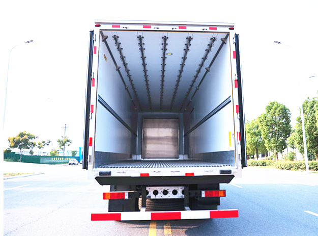 東風(fēng)天龍9米6冷藏車廂體配置為:斷橋隔溫工藝,整體結(jié)構(gòu)框架,內(nèi)外面料為3mm新款啞光玻璃鋼夾保溫層真空復(fù)合而成,廂體厚度為8cm,最新款鋁合金包邊型材,型材局部厚度為4mm(鋼制鉚釘加固),廂體內(nèi)部采用2個(gè)LED照明燈及廂體示寬燈,后門框不銹鋼材質(zhì),門框密封條為三元乙丙橡膠材質(zhì),加厚型不銹鋼合頁(yè)及鎖件;副梁為Q700車用大梁鋼,15mm厚大梁墊皮,加裝防撞膠塊,不銹鋼門鎖件,配后雙開門,副駕駛一側(cè)居中靠前開單側(cè)門一個(gè),帶2個(gè)排水孔。