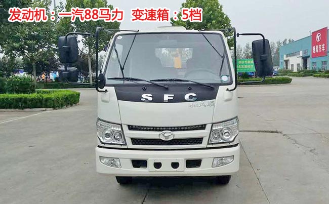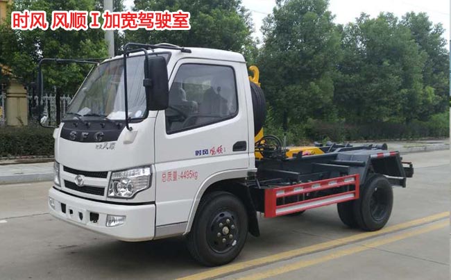 時(shí)風(fēng)風(fēng)順勾臂式垃圾車,風(fēng)順Ⅰ加寬駕駛室,一汽88馬力發(fā)動(dòng)機(jī),5檔變速箱,軸距2.7米,6.50-16輪胎,帶方向助力、ABS,油剎。