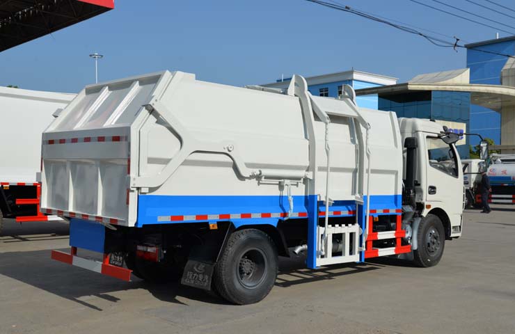 容積6~8立方米,箱體采用Q235碳鋼材質(zhì),箱體右側(cè)配液壓掛桶提升機(jī),可掛國標(biāo)120升+240升塑料垃圾桶,駕駛室外部手動操作,鐵通掛架;后門鎖緊為機(jī)械鎖緊,手動開啟;相同結(jié)構(gòu)為槍版形式。
