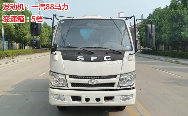 時風(fēng)風(fēng)順掛桶式垃圾車,風(fēng)順加寬駕駛室,一汽88馬力發(fā)動機(jī),5檔變速箱,6.50-16輪胎,帶方向助力,油剎。