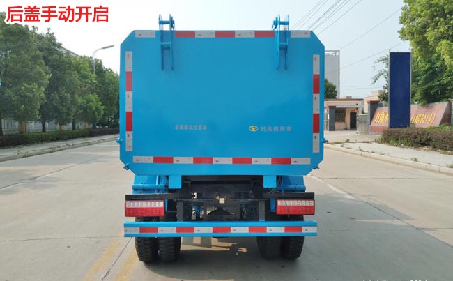 容積3~4立方米,標(biāo)配全國知名油缸,淮安多路閥,駕駛室外部手動操作,鐵通掛架;后門鎖緊為機(jī)械鎖緊,手動開啟;相同結(jié)構(gòu)為槍版形式,碳鋼材料,箱體邊三底四。雙頂自卸,可裝240升拉圾桶50個,環(huán)保齊全,不超重,好上戶。