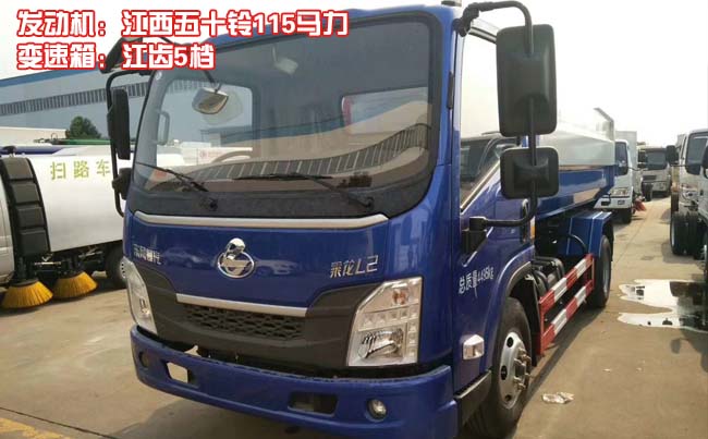 東風(fēng)柳汽L2掛桶垃圾車,L25單排駕駛室,配江西五十鈴115馬力發(fā)動機(jī),江齒5檔變速箱,Ф265離合,軸距3360,5T后橋/5.571,190(5)車架,120L塑料油箱,7.00R16,固定式駕駛室懸置、扭桿式翻轉(zhuǎn)、電動玻璃升降器、遙控鑰匙+中控鎖(四鎖合一)、液晶儀表、空調(diào)、斷氣剎、ABS。