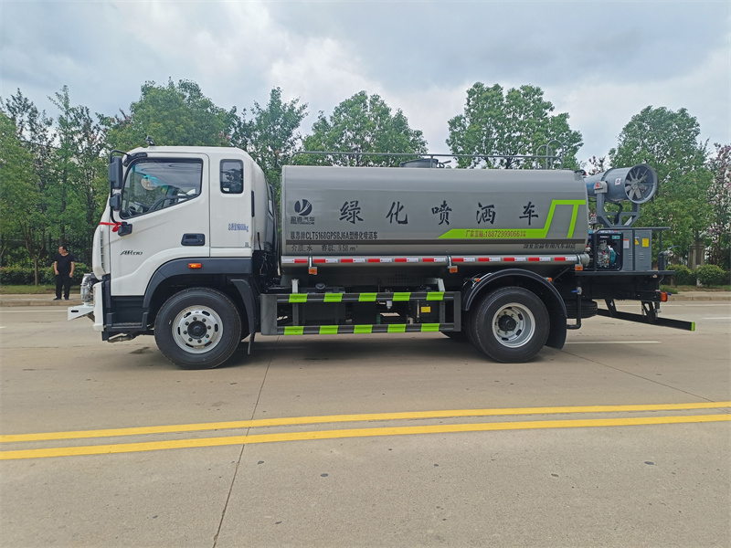 產(chǎn)品簡述:縱昂牌 CLT5188GPSEQ6A 型綠化噴灑車標配前噴(鴨嘴)、后對沖、 后灑、側(cè)噴、后置式工作平臺,平臺上配置綠化水炮(可 360°旋轉(zhuǎn),既可以調(diào) 成柱狀,也可以調(diào)成霧狀),配備優(yōu)質(zhì)大功率專用灑水泵(可自吸自排,可從河 里或池塘抽水到罐體),取力器,雜物過濾網(wǎng),消防接口,自流球閥系統(tǒng)、取力 器、球閥、濾網(wǎng)均為國家標準產(chǎn)品,主管道加粗,法蘭墊、法蘭盤加厚,大通徑 球閥。整體具備性能優(yōu)良安全可靠、效率高、流量大、維修方便等特點