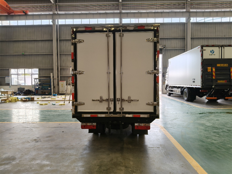 廂體工藝: 廂體材質(zhì)采用內(nèi)外玻璃鋼,中間XPS保溫板,后雙開門,廂體右側(cè)靠前選裝開側(cè)門,底部采用花紋防滑鋁板,前部排水孔,門邊條采用迷宮式橡膠密封條,鋁合金型材包邊,不銹鋼包角,不銹鋼門鎖,不銹鋼門框及合頁(yè),廂體內(nèi)節(jié)能LED照明燈。
