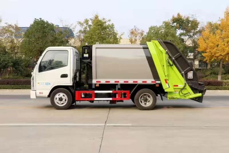 新款平面弧形廂體,廂體材料為武鋼優(yōu)質(zhì)碳鋼,外箱尺寸:5995×2000×2450mm,有效壓縮容積4立方,PLC一鍵操作控制,手電一體操作模式,兩側(cè)雙電控,帶駕駛室內(nèi)操作,底板支撐加強,雙向壓縮,開放式易清潔污水箱,解決了垃圾運輸過程中的二次污染的問題。壓縮式垃圾車具有自動反復(fù)壓縮以及蠕動壓縮功能,壓縮比高、密封性好、裝載量大﹑操作方便、環(huán)保性好﹑整車利用功率高等優(yōu)點。凱馬壓縮式垃圾車小巧靈活,可在市內(nèi)地下室任意穿行,C證可開。