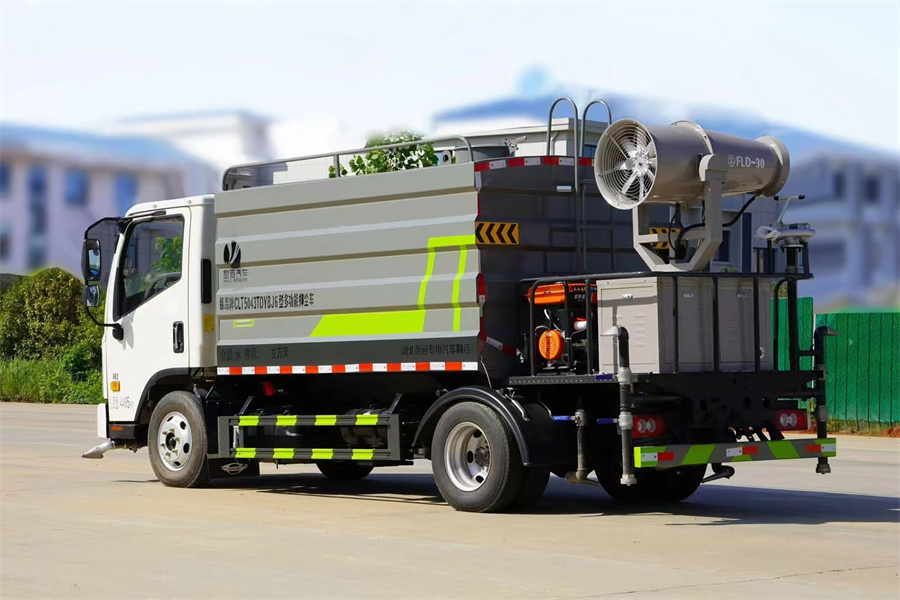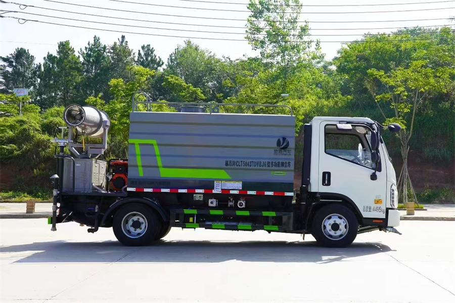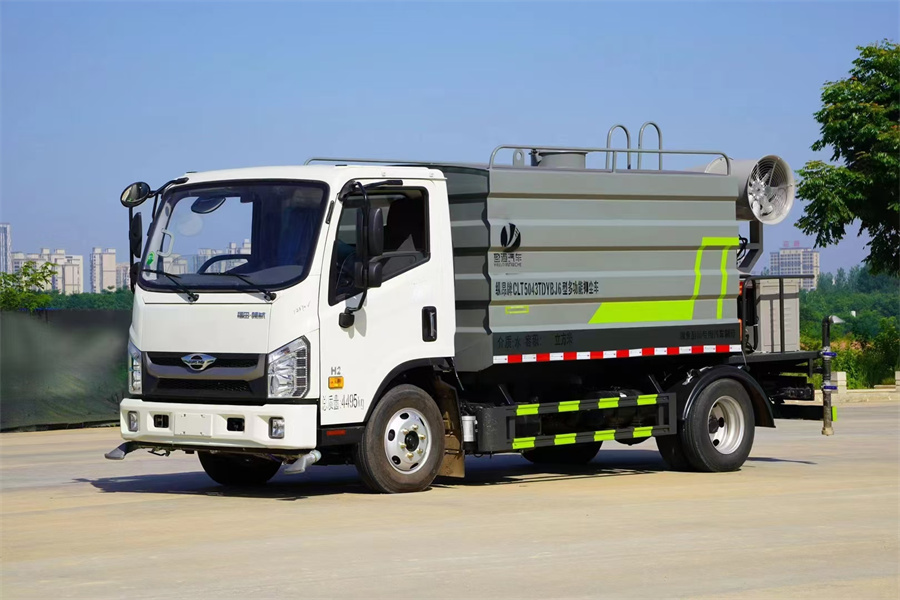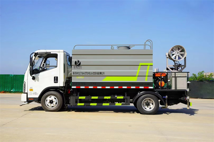 福田7方藍牌霧炮灑水車產品簡述:縱昂牌 CLT5043TDYBJ6 型多功能抑塵車標配前噴(鴨嘴)、后對 沖、后灑、側噴、后置式工作平臺,平臺上配置綠化水炮(可 360°旋轉,既可 以調成柱狀,也可以調成霧狀),配備優(yōu)質大功率專用灑水泵(可自吸自排, 可從河里或池塘抽水到罐體),取力器,雜物過濾網,消防接口,自流球閥系統(tǒng)、 取力器、球閥、濾網均為國家標準產品,主管道加粗,法蘭墊、法蘭盤加厚, 大通徑球閥。整體具備性能優(yōu)良安全可靠、效率高、流量大、維修方便等特點。