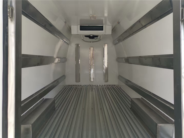 福田G9冷藏車車廂配置:廂體采用內(nèi)外優(yōu)質(zhì)玻璃鋼板,內(nèi)膽圓弧式廂體,地板為鋁花紋板,底板和四周廂板加裝通風(fēng)槽,不銹鋼門框,鎖件。