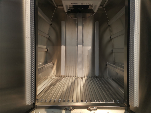 江鈴全順V362柴油版疫苗冷鏈車車廂配置:廂體采用內(nèi)外優(yōu)質(zhì)玻璃鋼板,內(nèi)膽圓弧式廂體,地板為鋁花紋板,底板和四周廂板加裝通風(fēng)槽,不銹鋼門框,鎖件。 江鈴全順V362柴油版疫苗冷鏈車保溫廂內(nèi)板為304不銹鋼板,夾保溫層制作,廂體底板和四周廂板安裝通風(fēng)槽。廂內(nèi)帶LED照明燈,溫濕度顯示記錄儀,紫外線消毒燈,外場照明燈燈配置。