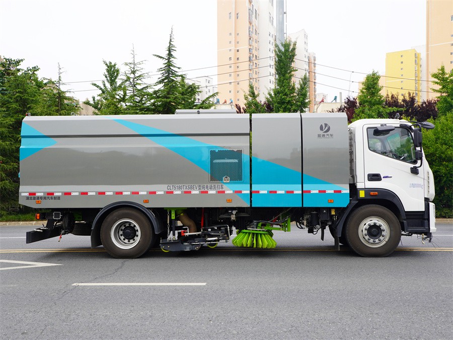 福田18噸洗掃車該車主要用于清掃、清洗路面垃圾污物;主要裝置為箱體及清掃裝置;側(cè)防護由專用裝置代替,后下部防護材料為:Q235碳鋼,連接方式為:螺栓連接,后下部防護截面尺寸(mm):230×60,后下部防護離地高度(mm):380.ABS型號/生產(chǎn)企業(yè):ABS-E/威伯科汽車控制系統(tǒng)(中國)有限公司;電池種類/單體生產(chǎn)企業(yè)/總成生產(chǎn)企業(yè):磷酸鐵鋰電池/寧德時代新能源科技股份有限公司/寧德時代新能源科技股份有限公司;電機型號/生產(chǎn)企業(yè):FTTB080C/北汽福田汽車股份有限公司,額定功率:80kW;峰值功率:160kW;整車長度為9830mm時,前伸為1230mm;選裝前部不帶高壓清洗裝置,該狀態(tài)下車輛長度為8600mm.車輛后部箭頭燈和前部作業(yè)指示燈僅在作業(yè)時開啟.選裝無中間對沖裝置.