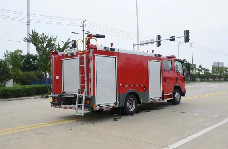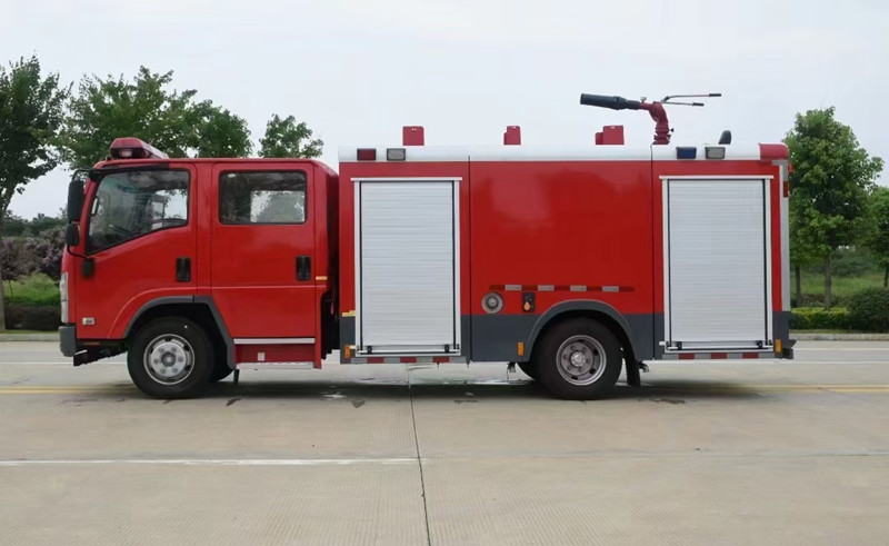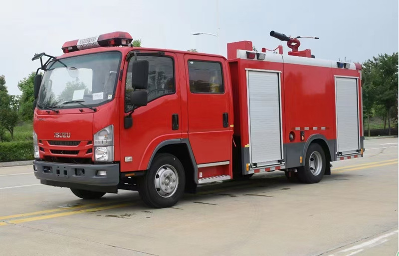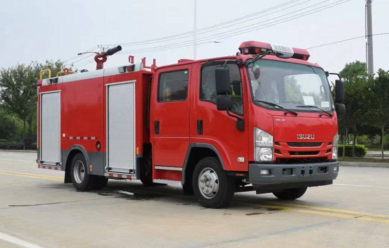 重慶五十鈴2-3噸消防車慶鈴QL1070A6HWY底盤改裝,平頭雙排駕駛室,液壓翻轉(zhuǎn),五十鈴4KH1CN5LS發(fā)動機(jī),98馬力,國五排放,罐體容積2-3立方米;整車結(jié)構(gòu)緊湊,方便靈活,動力性能好,車速高,能自由進(jìn)出鄉(xiāng)村狹窄道路及小區(qū),具有大型消防車的全套消防功能,上裝箱體的上裝骨架全部采用引進(jìn)歐洲技術(shù)生產(chǎn)的鋁合金型材制造,整車的重量減少,機(jī)動性能和整車載重量提高。除了裝備消防水泵及器材以外,還設(shè)有較大容量的貯水罐及水槍、水炮等?蓪⑺拖廊藛T輸送至火場獨(dú)立進(jìn)行撲救火災(zāi)。也可以從水源吸水直接進(jìn)行撲救,或向其他消防車和滅火噴射裝置供水。在缺水地區(qū)也可作供水、輸水用車,主要適用于大中城鎮(zhèn)、鄉(xiāng)村狹窄街道、城市小區(qū)、繁忙的批發(fā)市場等場所的一般物質(zhì)滅火,閑暇時可用于園林噴灌、道路清灑。
