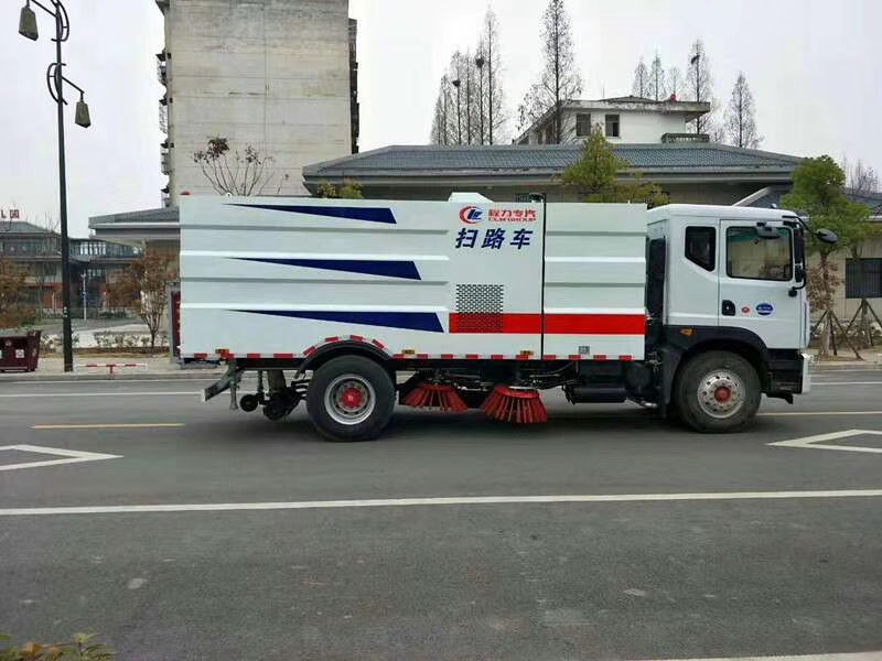 1. 采用吸掃結(jié)合的方式收集垃圾,濕式除塵、電液控制,液壓傾翻卸料的作業(yè)方式對路面進行清掃作業(yè)。