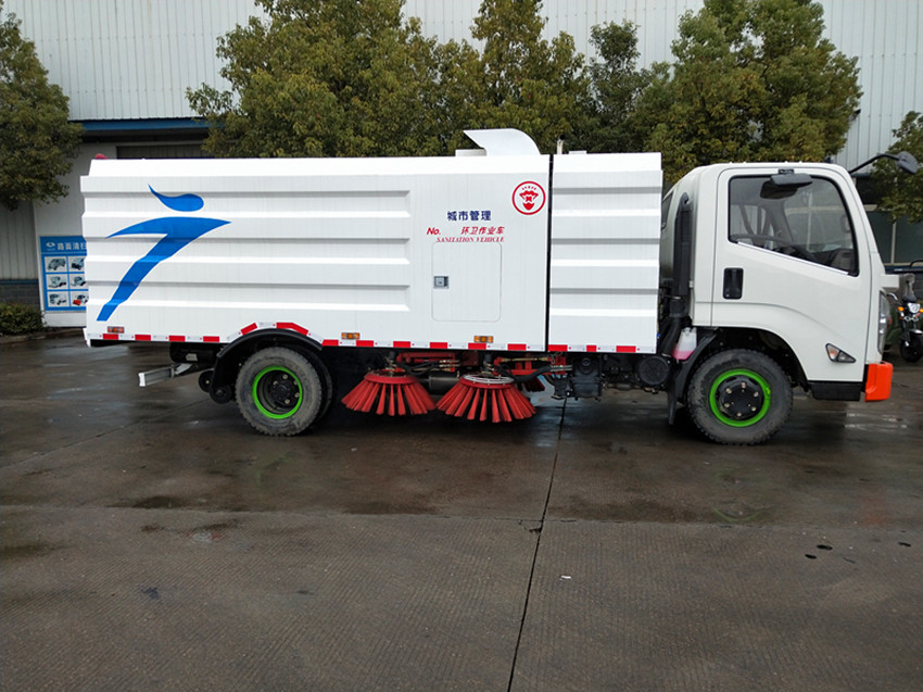 1、掃路車采用吸掃結(jié)合的方式收集垃圾,濕式除塵、電液控制,液壓傾翻卸料的作業(yè)方式對路面進(jìn)行清掃作業(yè)。